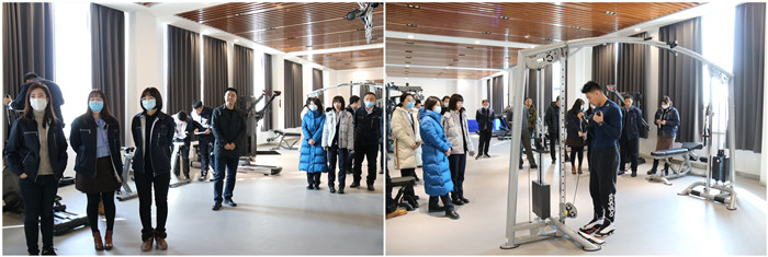 在一樓健身房?jī)?nèi),教練向大家逐一介紹了各類(lèi)常用健身器材及使用方法,并就員工提出的健身運(yùn)動(dòng)問(wèn)題進(jìn)行了一一解答。通過(guò)教練的標(biāo)準(zhǔn)示范,大家積極參與、親身體檢,相互交流健身鍛煉心得。